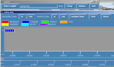 Для просмотра файла регистрационного журнала при помощи утилиты upshot его необходимо преобразовать в формат alog при помощи утилиты clog2alog: