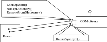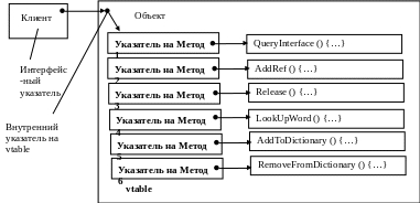 Рис. 2.1. A COM объект, его интерфейс и его клиент