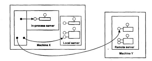 • COM объект выполнен на сервере (в процессе, локально или удаленно)