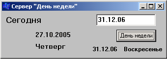 На рис. 1 представлено главное окно приложения-сервера «День недели».