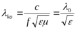 , где с – скорость света в вакууме, ε – относительная диэлектрическая проницаемость, μ – относительная магнитная проницаемость.