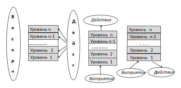 Рис.2 Организация взаимодействия уровней в многоуровневой архитектуре агента