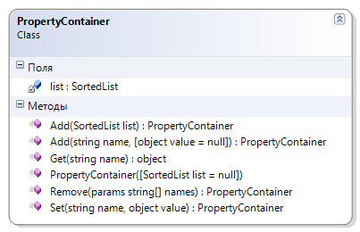 Контейнер свойств (англ. Property Container) – шаблона, обеспечивающий динамическую расширяемость уже готового объекта.