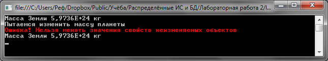 Console.WriteLine("Пытаемся изменить массу планеты");