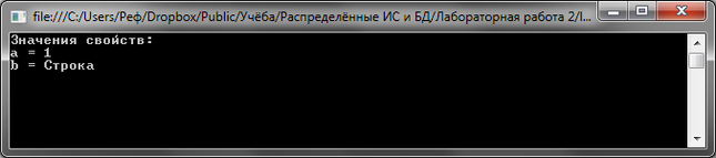 Console.WriteLine("Значения свойств:\na = " + container.Get("a") +