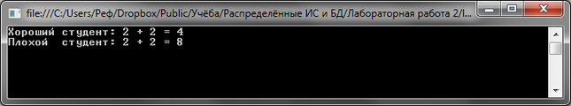 Console.WriteLine("Плохой студент: 2 + 2 = " + teacher.sum(2, 2));