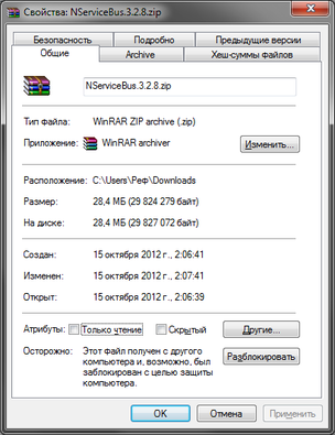 (клик правой кнопкой мыши по архиву >> Свойства >> Разблокировать)