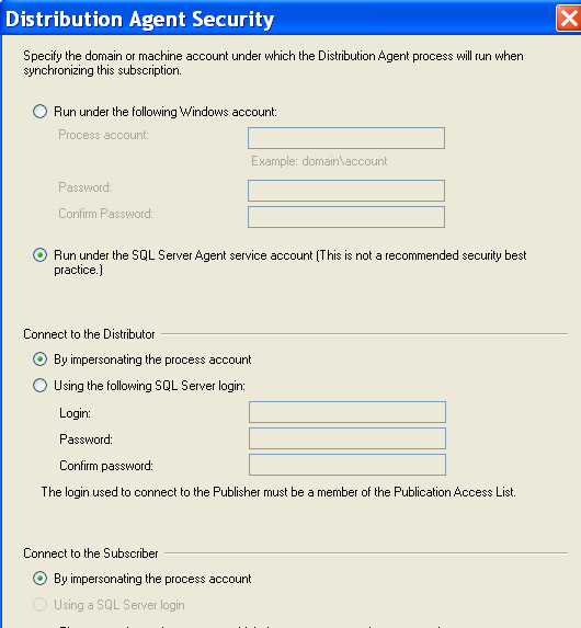 На примере выбрана репликация с расположением агентов на подписчиках, т.е Pull репликация, образно говоря каждые подписчик «тянет» на себя транзакции с распространителя.