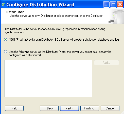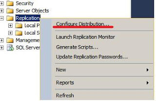 На объекте «Репликация» в контекстном меню выбираем настройка Распространиетеля (Configure Distribution)