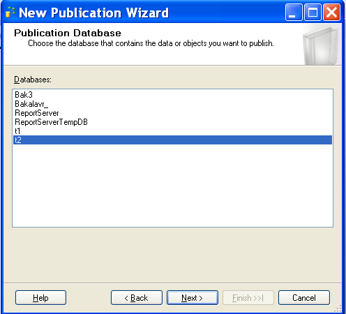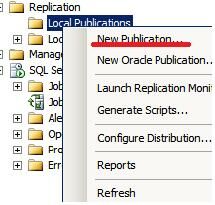 Выбираем на объекте MS SQL сервера Replication пункт меню новая публикация: