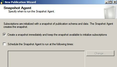 Далее указываем, что моментальный снимок создается сразу при инициализации подписчика:
