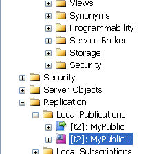 exec sp_addpublication @publication = N'MyPublic1', @description = N'Snapshot publication of database ''t2'' from Publisher ''SONYP''.', @sync_method = N'native', @retention = 0, @allow_push = N'true', @allow_pull = N'true', @allow_anonymous = N'true', @enabled_for_internet = N'false', @snapshot_in_defaultfolder = N'true', @compress_snapshot = N'false', @ftp_port = 21, @ftp_login = N'anonymous', @allow_subscription_copy = N'false', @add_to_active_directory = N'false', @repl_freq = N'snapshot', @status = N'active', @independent_agent = N'true', @immediate_sync = N'true', @allow_sync_tran = N'false', @autogen_sync_procs = N'false', @allow_queued_tran = N'false', @allow_dts = N'false', @replicate_ddl = 1