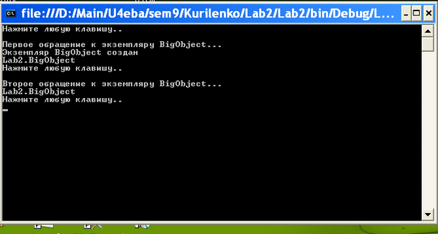System.Console.WriteLine("Второе обращение к экземпляру BigObject...");