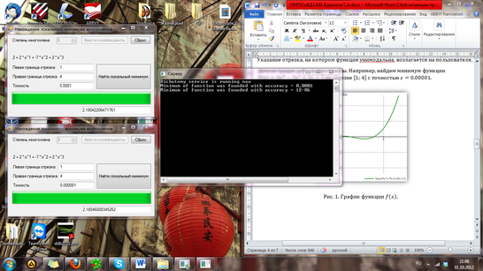 Ограничение. В работе рассматривается минимизация полиномиальных функций. Указание отрезка, на котором функция унимодальна, возлагается на пользователя.