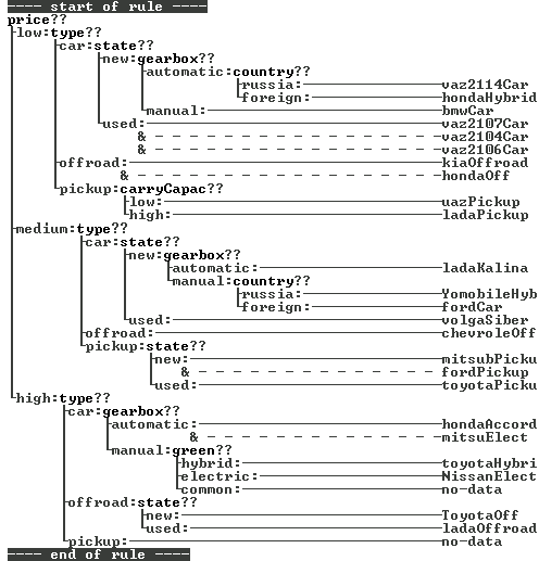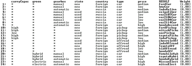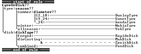 Для частной БЗ AUTO используется схема неопределенности на основе веротяностной схемы, для TYRESDISK – на основе коеффициентов уверенности. Предполагается, что в первом случае множество альтернатив полное, а во втором - неполное