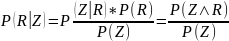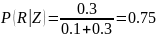 P(Z&R) = 0.3, а P(Z) = 0.3 + 0.1 = 0.4. Тогда