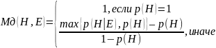 Мд(H,E) – мера доверия к гипотезе H при условии E