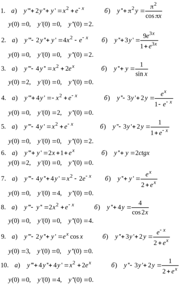 а) Найти решение задачи Коши методом неопределенных коэффициентов.