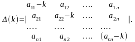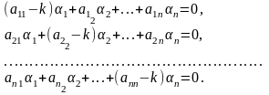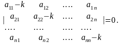 Таким образом, нетривиальные решения (2) мы получим только при таких k, при которых определитель (4) обращается в нуль. Мы приходим к уравнению n-го порядка для определения k: