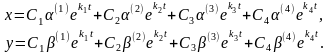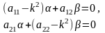 Это есть характеристическое уравнение для системы (10); оно является уравнением 4-го порядка относительно k. Пусть k1, k2 , k3 и k4 – его корни (предполагаем, что корни различны). Для каждого корня ki из системы (11) находим значения и . Общее решение, аналогично (6), будет иметь вид