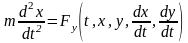 Получили систему трех дифференциальных уравнений второго порядка. В случае плоского движения, т.е. движения, когда траекторией является плоская кривая (лежащая, например, в плоскости Oxy), получаем систему двух уравнений для определения функций x(t) и y(t):