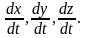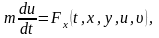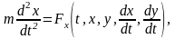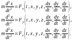 Предположим, что сила F, а следовательно, и ее проекции Fx, Fy, Fz зависят от времени t, положения x, y, z точки и от скорости движения точки, т.е. от
