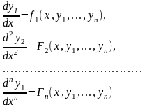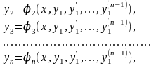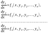 где y1, y2,,…, yn – искомые функции, x – аргумент.