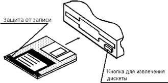 Данные, записанные на дискете, можно защитить от случайного стирания или перезаписи. В дискете диаметром 5,25" для этого надо заклеить отверстие защиты от записи при помощи специальной полоски. Набор таких полосок продается вместе с дискетами. В дискете диаметром 3,5" для защиты от записи есть специальная крышечка. Вы можете с ее помощью закрыть отверстие, защитив таким образом записанные на дискете данные.