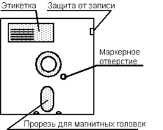 Дискеты надо вставлять в прорезь НГМД осторожно, при этом они должны вставляться таким образом, чтобы прорезь для магнитных головок была направлена внутрь НГМД, а прорезь защиты от записи (или отверстие защиты от записи в дискетах диаметром 3,5") находилась слева. При этом этикетка должна быть наклеена сверху. Если вы вставите дискету неправильно, это может привести к повреждению НГМД.