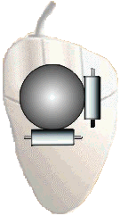 Внутри нее помещен шарик, покрытый мягкой резиной. При движении мыши по гладкой поверхности шарик вращается. Его вращение передается двум валикам, оси которых перпендикулярны между собой. На валиках установлены диски с прорезями. С одной стороны от диска стоит небольшой источник света (светодиод), а с другой стороны - приемник света (фототранзистор). При вращении дисков луч света, идущий от светодиода к фототранзистору, прерывается, в результате чего на фототранзисторе возникают импульсы (сигналы). Эти сигналы по проводам передаются в компьютер, где и обрабатываются.