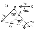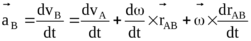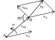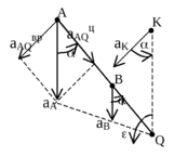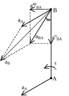 – ускорение любой точки (В) фигуры геометрически складывается из ускорения полюса (А) и центростремительного и вращательного ускорений во вращательном движении тела относительно полюса.