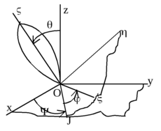 ф.движ – движение твердого тела, одна из точек которого во все время движения остается неподвижной (напр. движение волчка). Точки тела движутся по сферическим поверхностям. Положение тела определяют при помощи трех углов. Для этого задаются две системы координат: неподвижная Оxyz и подвижная О, связанная с твердым телом. Линия ОJ – линия узлов, задаются углы: – угол прецессии, – угол нутации, – угол собственного вращения — углы Эйлера. Таким образом уравнения сферического движения: =f1(t); =f2(t); =f3(t). Углы отсчитываются от осей против хода час.стр. Теорема Эйлера-Даламбера: всякое перемещение тела, имеющего неподвижную точку, можно заменить одним поворотом вокруг некоторой мгновенной оси вращения, проходящей через эту точку. Скорости всех точек тела, лежащих на мгновенной оси вращения в данный момент времени равны нулю. Вектор угловой скорости (мгновенной угловой скорости) откладывается о неподвижной точки по мгновенной оси в такую сторону, чтобы, смотря навстречу этому вектору, видеть вращение происходящим против час.стр. Вектор угловой с