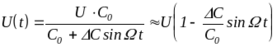 Вторая схема (рис. 73 б) работает в режиме заданного заряда. Для этого последовательно с источником питающего напряжения включается большое сопротивление для того, чтобы конденсатор не успевал перезаряжаться, и заряд на нем оставался неизменным. Тогда, при гармоническом изменении емкости напряжение на конденсаторе будет меняться, как