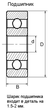 алы в редукторе закрепляются при помощи подшипников. Для данного редуктора подходят шариковые радиальные однорядные подшипники. Выбираем их по существующим стандартам таким образом, чтобы d подшипника для вала было больше или равно диаметру вала (d2в=26.31 мм.). Максимальная частота вращения подшипника зависит от типа смазочного материала. При пластичном – 15’000 об./мин, при жидком – 18’000 об./мин. Фаски на подшипнике (как и на любых других деталях) снимают для того, чтобы облегчить сборку механизма, по соображениям техники безопасности, острая грань – концентратор напряжения. На чертеже фаски на подшипнике можно не показывать так как они предполагаются ГОСТ’ом. Согласно ГОСТ 8338-75 легкая серия шариковых радиальных однорядных подшипников для второго вала подходит подшипник с условным обозначением 206. Его геометрические параметры: