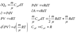 – газовая постоянная численно равна работе, совершаемой одним молем идеального газа при его изобарном нагреве на один градус кельвина.