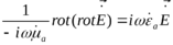 Получим волновые уравнения. Для перехода к волновым уравнениям воспользуемся первыми двумя уравнениями электродинамики с комплексными векторами поля и комплексными проницаемостями:
