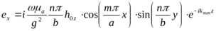 - поперечные составляющие для Е – поля собственных волн прямоугольного волновода: