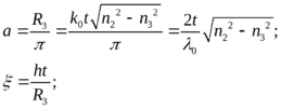 - относительные диэлектрические проницаемости подложки, волноведущего слоя и покрытия соответственно.