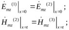 (рис. 1, б) тангенциальные составляющие электрического и магнитного полей должны удовлетворять граничным условиям (на границе раздела двух сред касательные компоненты электрического и магнитного поля непрерывны):