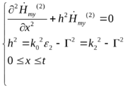 (зависит от источника возбуждения, который на данном этапе не рассматривается) и поперечные волновые числа