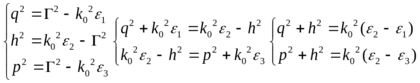 ), получим полную систему уравнений, определяющих значения поперечных волновых чисел