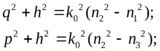Эти уравнения отличаются от уравнения для Н-мод только наличием квадрата отношений показателей преломления в аргументах арктангенса.