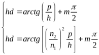 Эту систему трансцендентных уравнений можно решить наглядно графическим методом (рис.2). Совместное решение этих уравнений есть точки пересечения двух кривых, соответствующие подам пленочного волновода. Поскольку величина p должна быть положительной, ограничимся только первым квадрантом. Как следует из рис. 2а, при