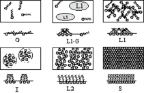 Рис. Примеры АМФВ: газообразных G, жидких L1, жидко-кристаллических L2 и твердо- кристаллических S монослоев.