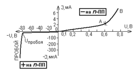 Обратная ветвь ВАХ pn-перехода полностью аналогична соответствующей характеристике контакта "металл-полупроводник".