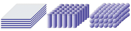 Рис. 9. Схематичная структура одномерных (1D), двумерных (2D) и трехмерных (3D) фотонных кристаллов.