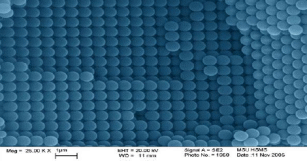 Рис. 12. Изображение молекулярного фотонного кристалла кубической структуры из микросфер полистирола.