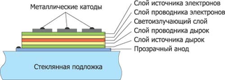Органический светодиод (OLED) содержит несколько слоев из органических веществ. Светодиоды – источники некогерентного (широкополосного) излучения.