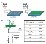 Еще одним электролюминесцентным источником является биполярный транзистор на перекрестии нанопроволоки из p-Si и нанопроволок из прямозонного полупроводника с электронным типом проводимости, например, из n-GaN, n-CdS , n-CdSe , n-InP. Электронные полупроводники имеют различные значения энергетического зазора запрещенной зоны полупроводников Eg, что обеспечивает различный цвет излучения. Нанопроволочная схема, благодаря сверхмалым размерам обладает высоким быстродействием.