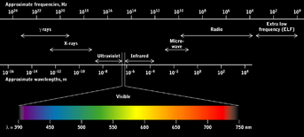 Рис. 1. Электромагнитный спектр излучения: гамма ( γ) – лучи, рентгеновские лучи (Х ), ультрафиолетовое излучение (UV), видимая область, инфракрасное излучение (IF)